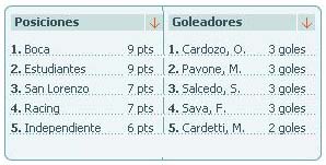 Posiciones y Goleadores